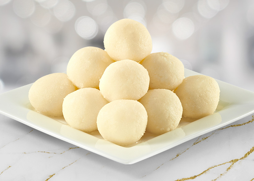 A milk based sweet that is formed into balls and soaked in syrup, resulting in a spongy texture that melts in the mouth.
